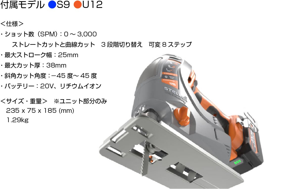 使用したい電動ユニット(ドリルドライバー、丸ノコ、ジグソー等)に、すぐに取り替えることができます。