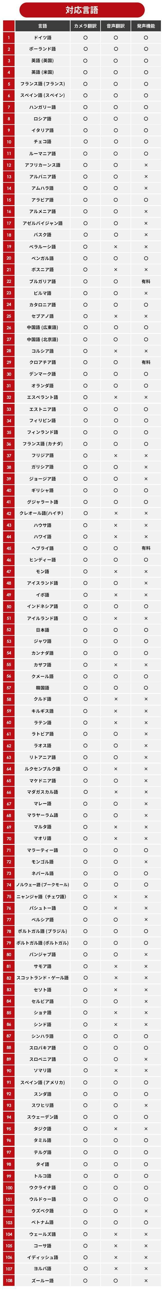 カメラでテキストを読み取るOCR(光学文字認識)から翻訳できる言語の総数は何と108言語。