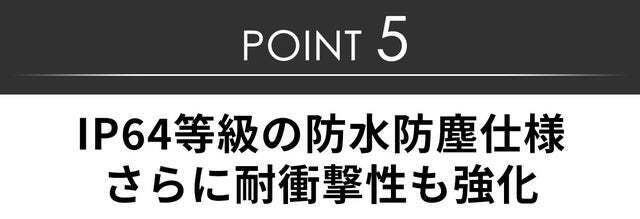 さらに外出先での突然の雨にも対応できるよう、国際的な防水防塵規格でIP64等級をクリア。
