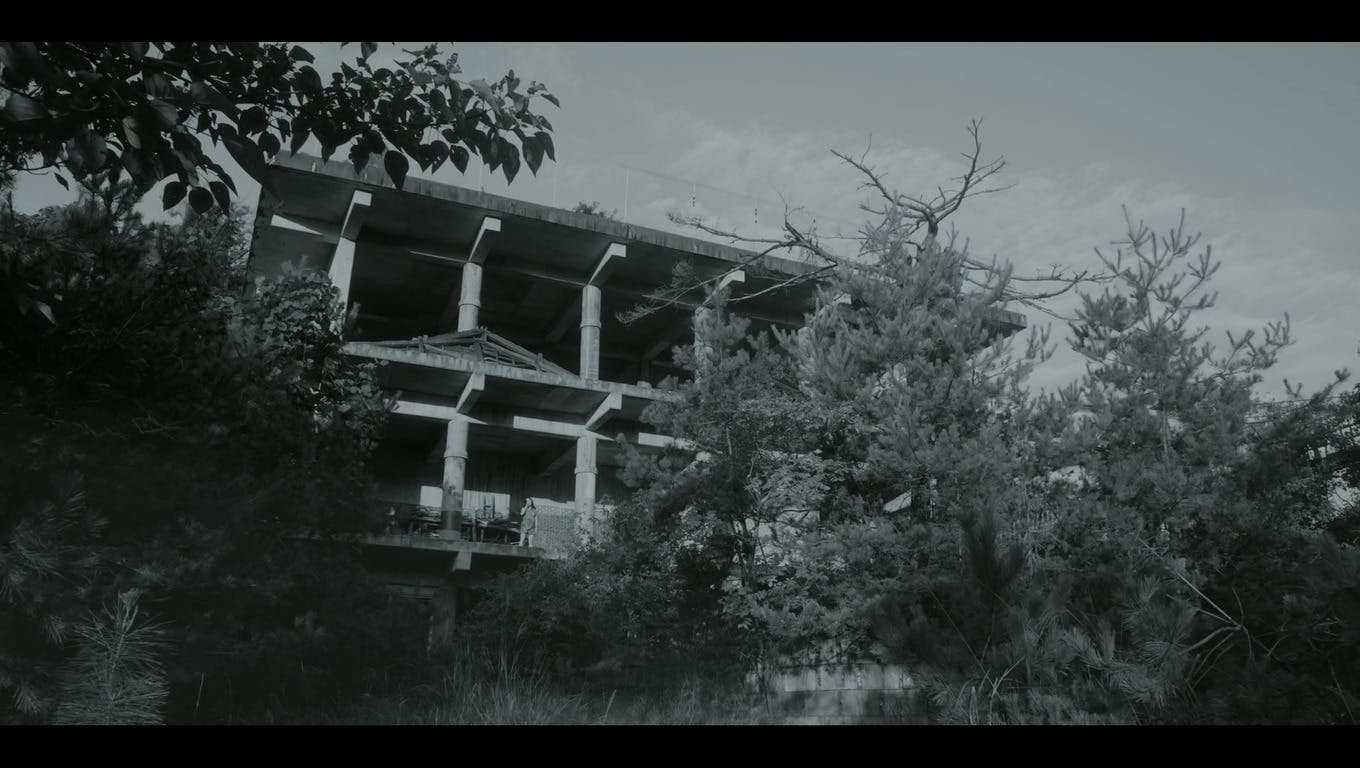 今作は岐阜県にある廃墟で2021/9/27〜10/11の間、約二週間の撮影を行いました。小高い山の頂上にある廃墟は素晴らしいロケーションなのですが、そこにたどり着くまでには急流滑りのような斜面を車で登り、荒れ果てて埃っぽい廃墟での連日の撮影。美術に使う材木なども現地(山)調達です!
