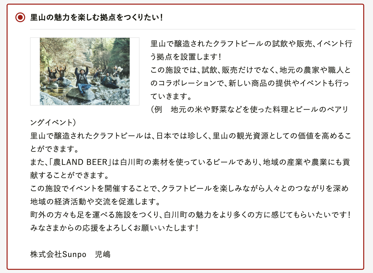 それが「遊べて、飲める、里山を感じるクラフトビール醸造所づくり」です。