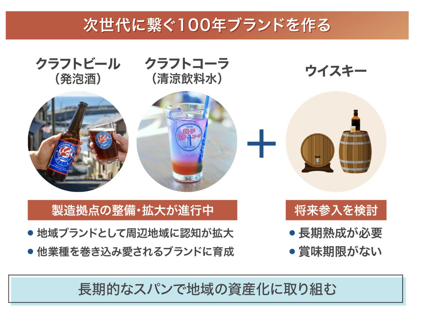 将来的には、地域の仲間とのコラボである銚子灯台コーラをはじめとするオリジナル飲料を自前で製造する拠点も整備します。