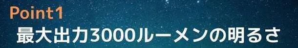 高輝度3000ルーメンで昼間のように明るい!