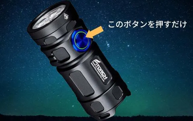 ・ボタン0.5秒長押しでエコモードへ※エコモードは最長800時間(約33日間)連続点灯します。