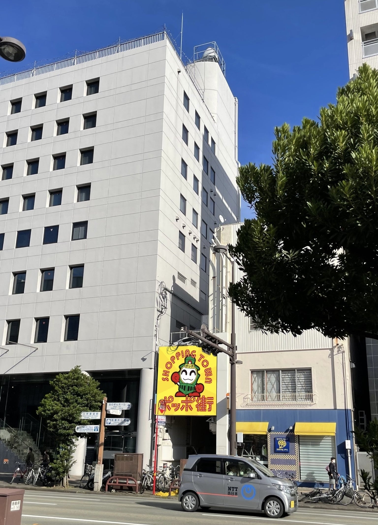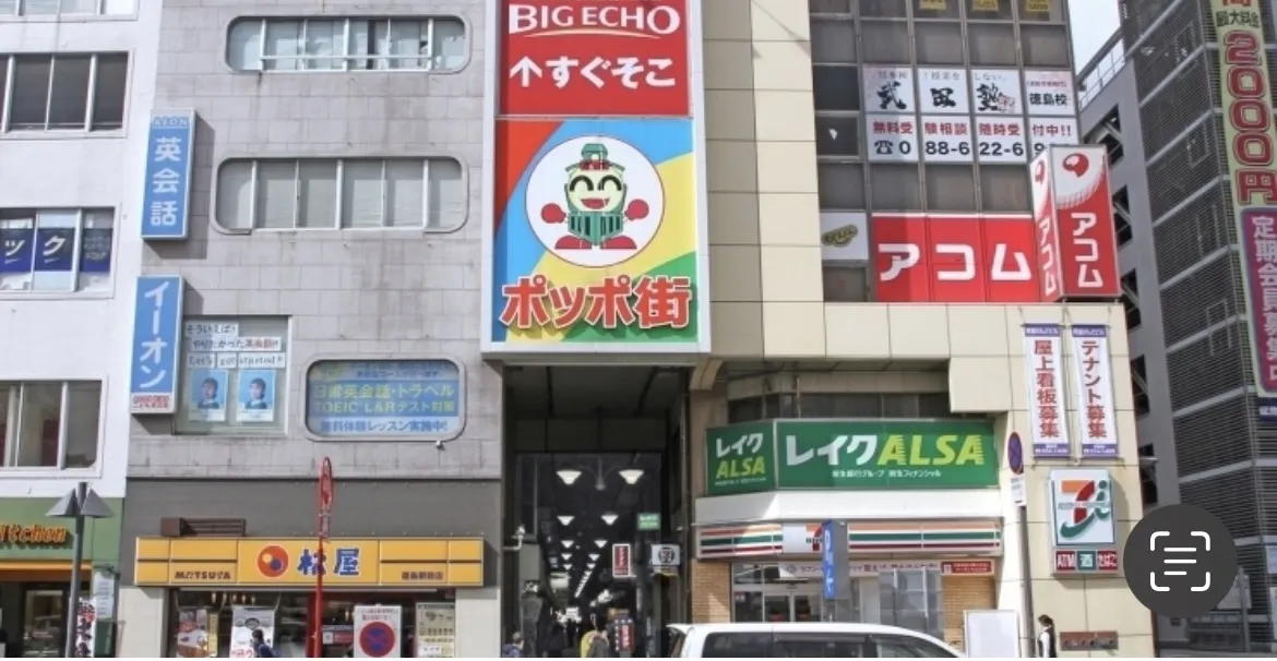 ポッポ街商店街は徳島駅に隣接した商店街で、全長160メートル×幅4メートルの歩行者だけが通れる商店街。