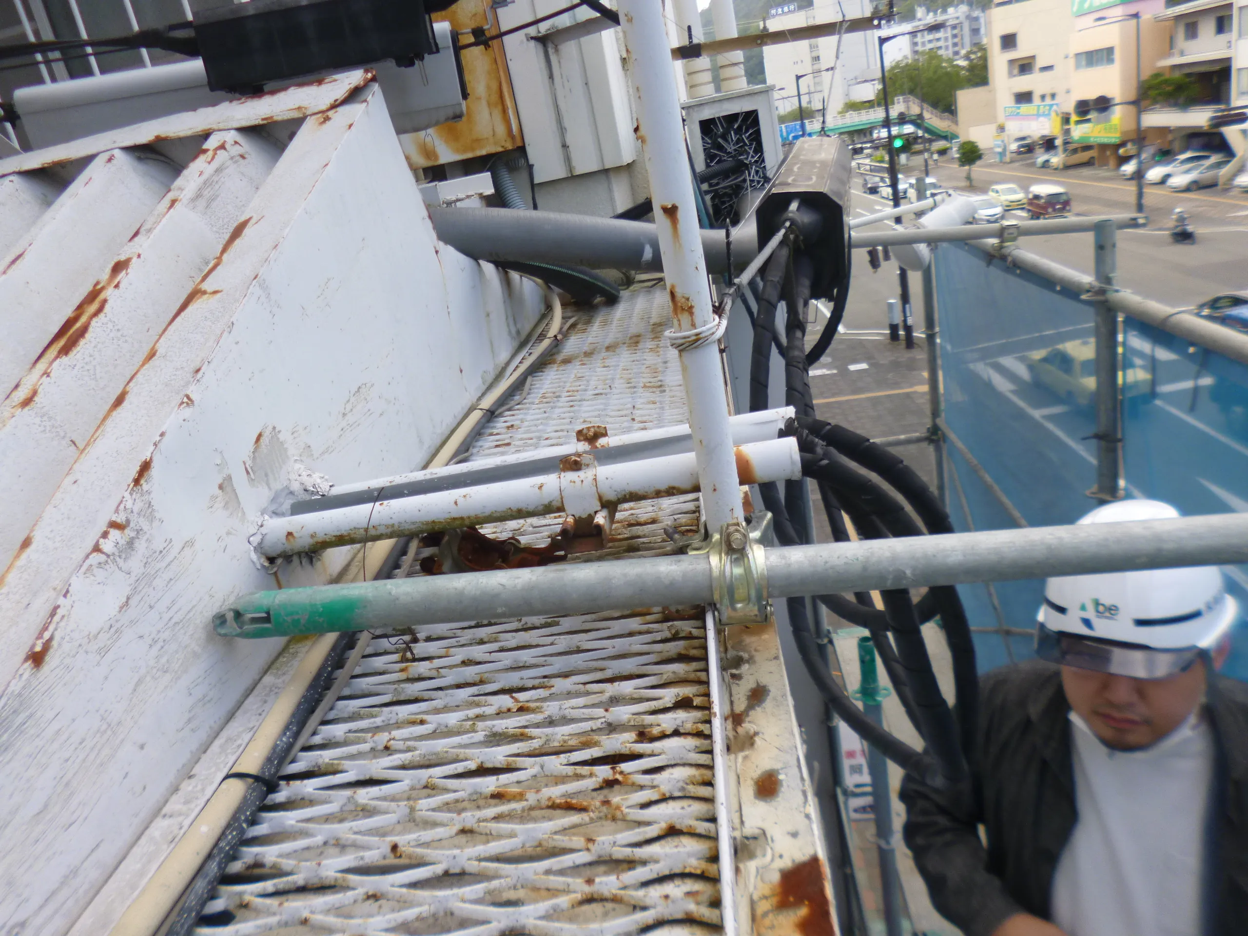 台風により半壊しているポッポ街商店街の顔であるアーケードの修復と剥き出し状態になっている電気配線の工事、看板の撤去や鉄柱などの交換をしていきます。