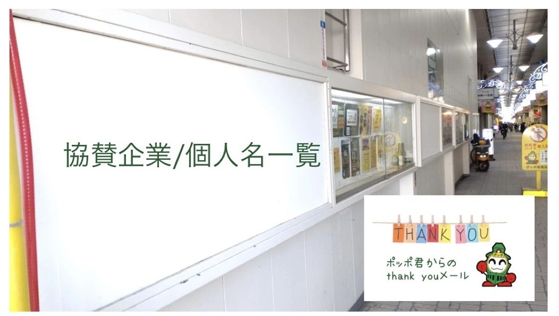 《商店街アーケード内の看板に協賛企業名又は個人名永久掲載・ポッポ君からのお礼メール》