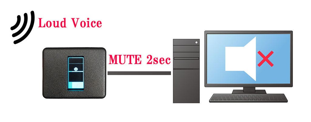 一度、ミュートすると、2秒後に、再びミュート信号が送信されるので、PCの音声ミュートは自動的に解除される。