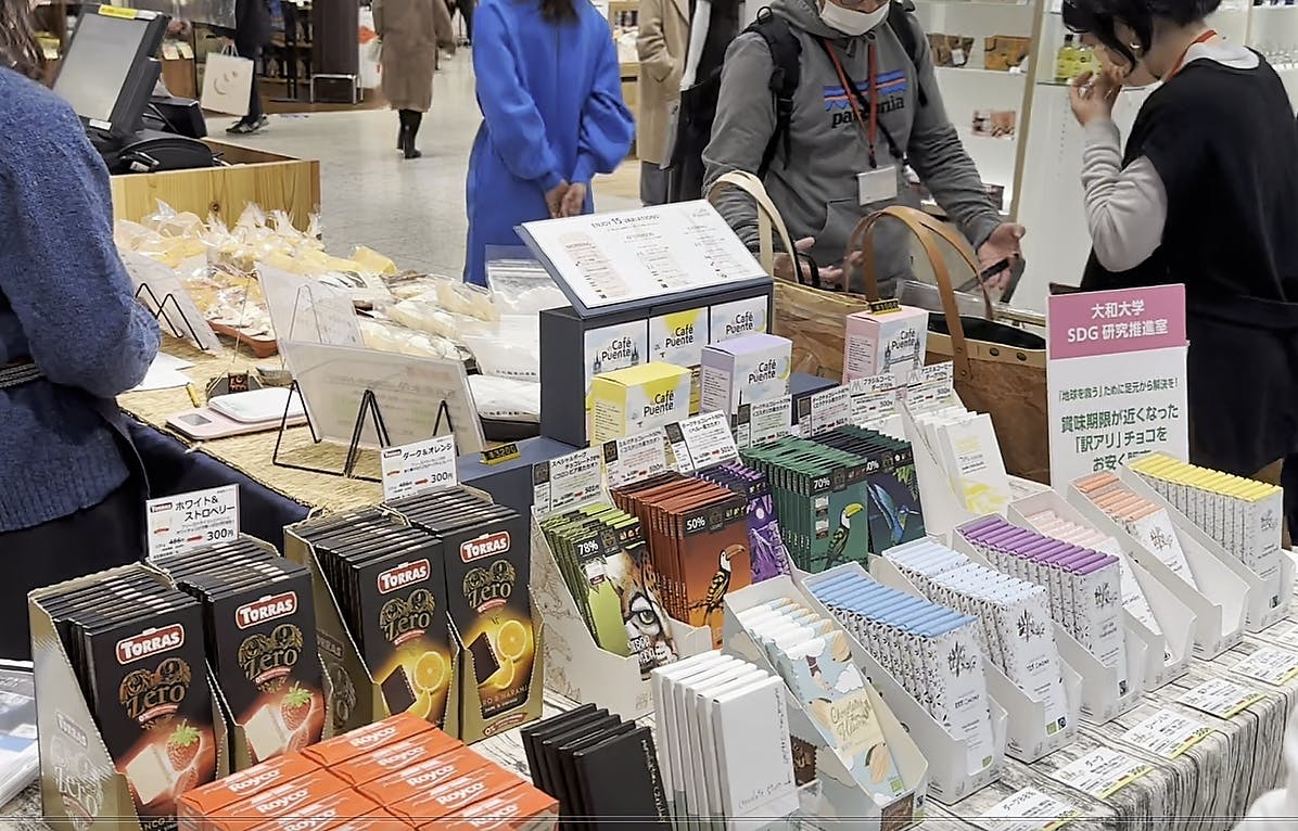 • 大阪・難波にある「なんばマルイ」で「サステイナブルデー」が開催されています。そこで、私たち大和大学社会学部SDG研究推進室は、フードロス問題をテーマにしたチョコレートを販売しています。賞味期限が近いため、定価よりもぐっとお安く販売しており、多くのお客様が訪れてくれています。そこで、私たちが創設した「ユニバーサルデー」(3月7日)もアピールしました。私たちの出店は、2/19までの2日間ですが、学生らが奮闘しています。 もっと見る