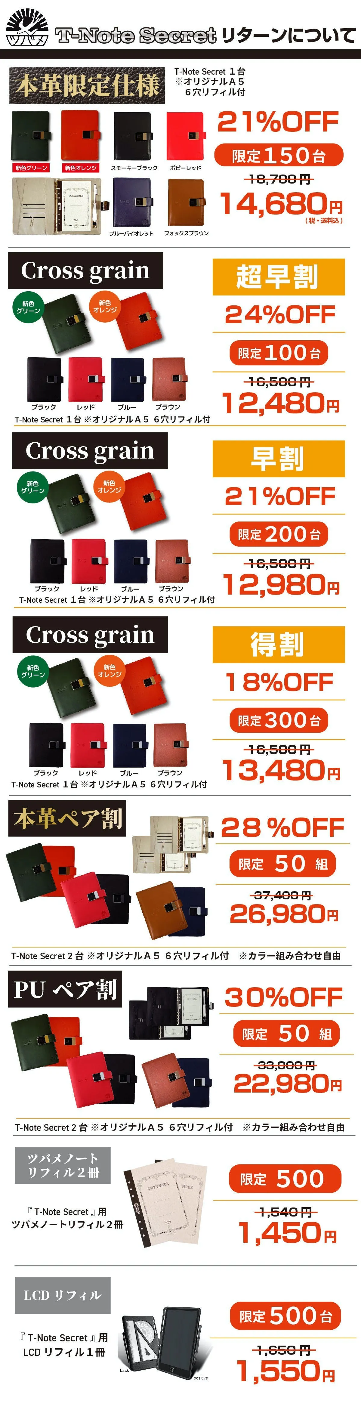 2024/01/26 21:00お世話になります。MKトレードです。■ライフハッカーで紹介されました!タブレットやスマホで手書きデータを管理できるようになりましたが、「やっぱり紙とペンで記録したい!」そんなワガママを叶えてくれるガジェット文具として『T-Note2』を紹介していただきました♪是非商品レビューを参考にご購入をご検討ください。掲載記事はコチラhttps://www.lifehacker.jp/article/machi-ya-tnote2-end-719281/画期的なタブレット!『T-Note2』おかげさまで200人達成!大変多くの方にご支援いただき心より感謝申し上げます。https://camp-fire.jp/projects/view/719281今回のプロジェクト『T-Note2』をご支援いただいたリピーター様に対して「先着50名様 オリジナルポケットメモ帳プレゼント」を開催中!※リピーター様、事前登録いただいた支援者様限定のキャンペーンです。 先着50名様まだご応募可能です!是非ご応募ください!---------------------------------------------------★応募方法★今回のプロジェクト『T-Note2』をご支援のうえ、「メッセージを送る」より下記を記載してご応募ください。【リピーター様】 ・過去にご支援くださった弊社プロジェクトの商品名 ・過去支援ID ・氏名【事前登録者様】 ・事前登録メアドまたはLINE名称 ・『T-Note2』の支援ID最後まで、どうぞよろしくお願いいたします。https://camp-fire.jp/projects/view/719281『T-Note2』プロジェクトスタッフ一同************************************************************追加購入などに便利な「MKTrade限定公開ショップ」もぜひご覧ください♪https://mktrade2.official.ec/ もっと見る