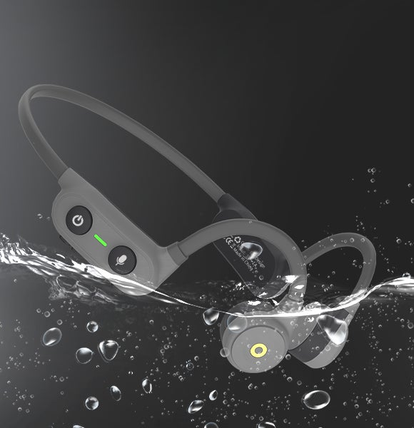 骨伝導とは、音波が鼓膜を経ずに、直接骨を伝わって内耳に達し、聴覚を起こす技術です。そのため、鼓膜を傷つけることなく、さらに高い防水性能を備えることが可能です。
