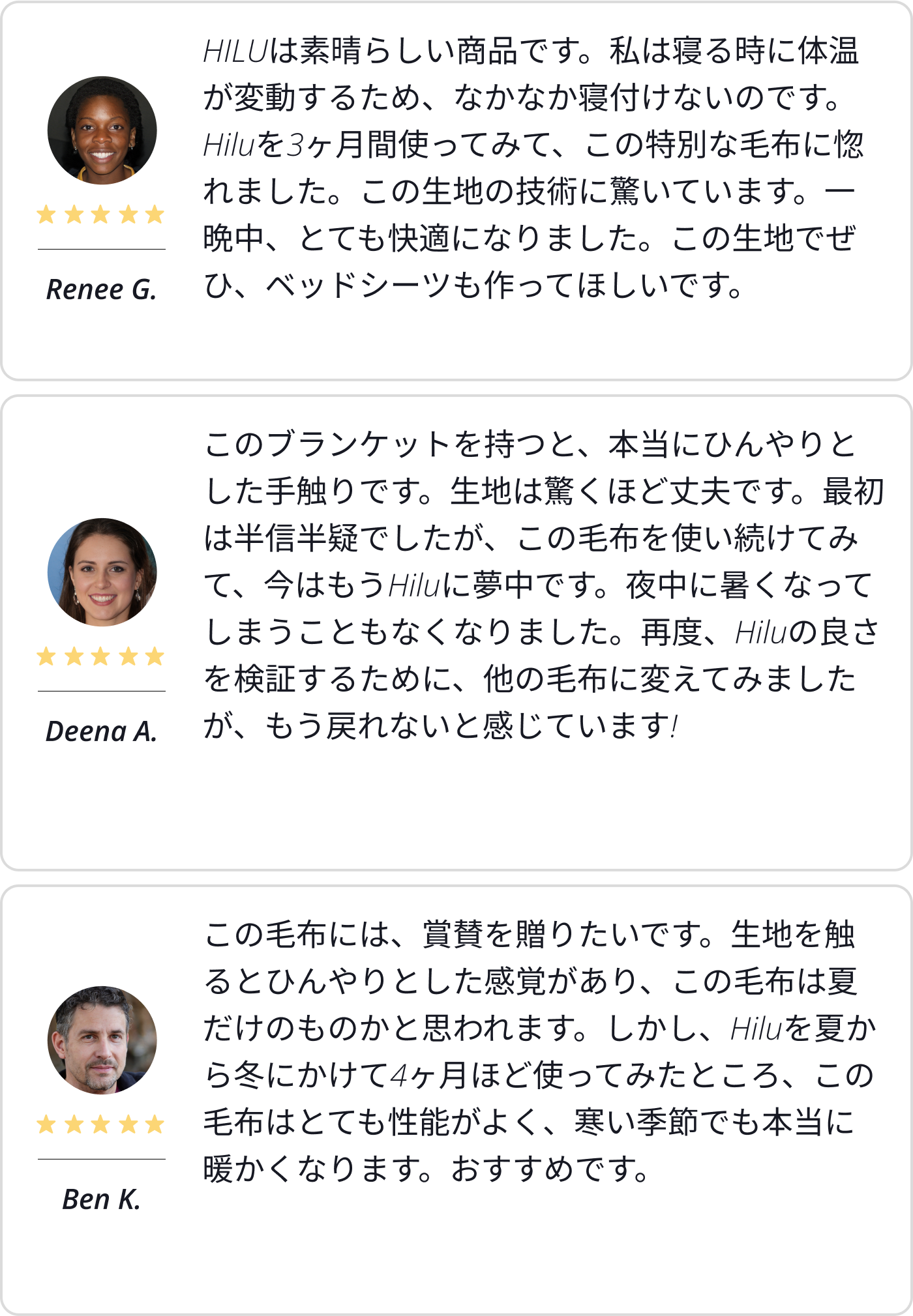 2025/09/05 19:00こんばんは。HILU運営チームです。今回は、YouTuberのカワイコージさんが、HILU Bluvetを1か月間しっかり体験してくださったレビュー動画をご紹介します。▼動画はこちらカワイコージさん体験リポートhttps://www.youtube.com/watch?v=mQ8qL_jJRd8【体験リポートの生声お届け!】ひんやりとした接触冷感とサラサラ&スベスベの肌触りを「今まで使ってきた接触冷感素材の中で、冷たさはNO.1」と、詳しくリポートしていただいています。10年保証の安心品質により、長く使えることで「エコにも貢献できる寝具」とご紹介いただいています。実際に1か月使い込んだリアルな声を是非、ご視聴ください。【HILU Bluvet 特別価格プラン(数量限定)】① HILU Bluvet 1枚 限定20名様 最大48%OFF 冷感・調湿に優れたブランケットです。3WAY使用で布団カバーにもなります。お手持ちのグラフェンブランケットとセットでお使いいただけます。② HILU Bluvet複数枚セット(2枚・3枚・4枚) 限定各10名様 52%OFF ご家族でHILU Bluvetをご活用いただけます。③ 特別3点セット(HILU Bluvet+枕カバー+アイマスク)限定10名様 最48%OFF HILU Bluvetと枕カバーをセットで寝具を一括アップデートが可能です。【ご支援方法】お申し込みの際は、支援申し込み画面の「備考欄」に下記パスワードをご記入ください。パスワード:HILUBLUVET2025AUGまた、HILUでは快適な眠りをサポートするオールシーズンセットもご用意いたしました。【特別セット(数量限定)】④オールシーズンセット(HILU Bluvet+グラフェンブランケット)限定10名様 54%OFFHILU Bluvetをグラフェンブランケットのカバーとしてお使いいただける、一年中快適に過ごせる特別プランです。★ご注意いずれのプランも数量限定となっております。定数に達し次第、受付終了となりますのでご了承ください。▼プロジェクトページはこちらhttps://camp-fire.jp/projects/837319/view皆さまのご支援を、心よりお待ちしております。HILU Japan 一同最新情報は公式SNSでも配信中!【公式SNS】𝕏(旧Twitter) :https://x.com/hilujapanInstagram :https://www.instagram.com/hilujapan/Facebook :https://www.facebook.com/profile.php?id=6157680217542LINE :https://lin.ee/H7DJipq もっと見る【最大54%OFF・特別価格プランのご案内】HILU Bluvetと一緒に使って快適な眠りを!