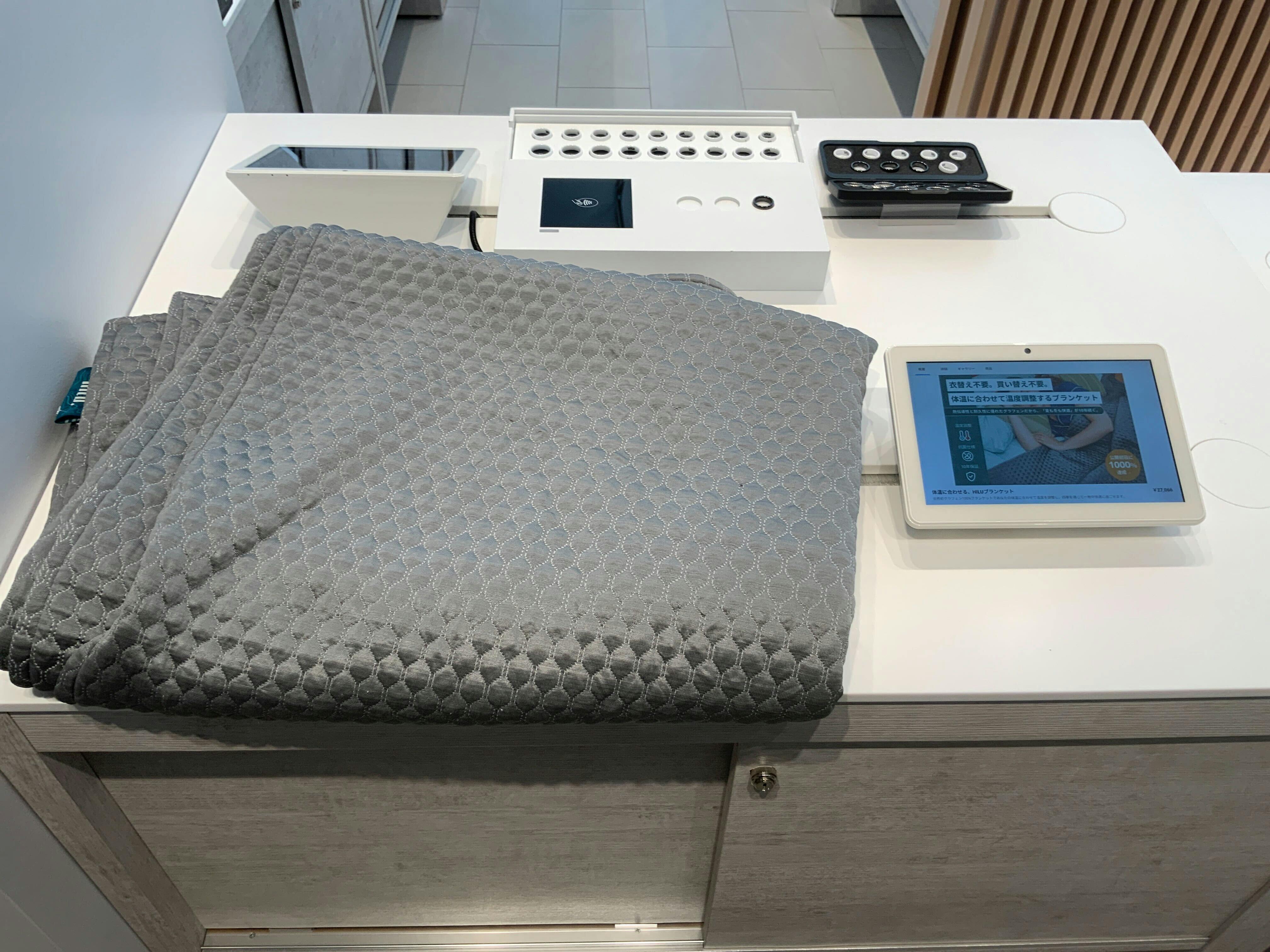 世界初のグラフェン100%素材入りブランケットHILUは、温度をそれぞれの人の体温に合わせて変化させる事ができるため、