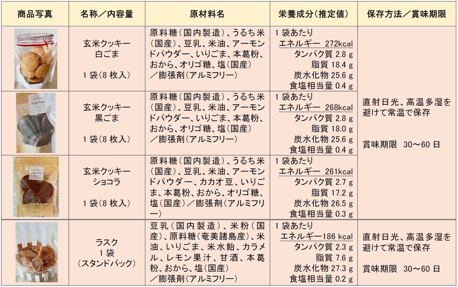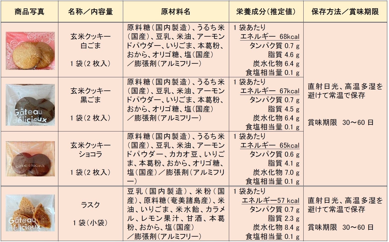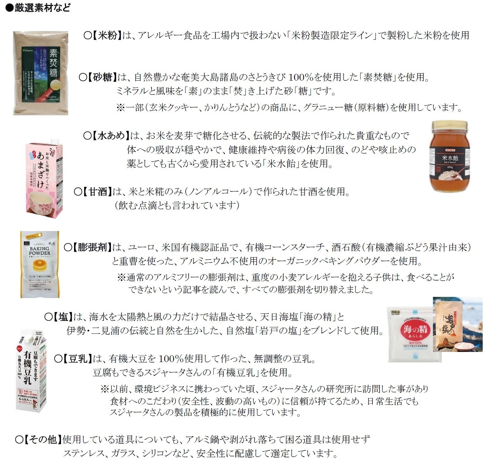 三大アレルゲン(卵・乳・小麦)不使用で、美味しく仕上げるのは容易ではなく、米粉の「お菓子」は、お餅を連想してもらうと分かるように、冷えると固くなる性質があり、「しっとり、ふわっと、もっちり、サクサク」した「お菓子」に仕上げるには、試行錯誤と忍耐が必要な「お菓子」づくりの期間でした。