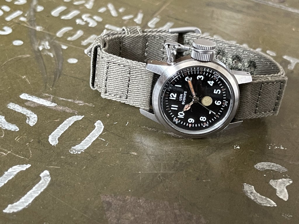 「Buships watch maker」には"USN BUSHIPS"のロゴ。"USN BUSHIPS"とはUnited State Navy Bureau of Shipsの略です。