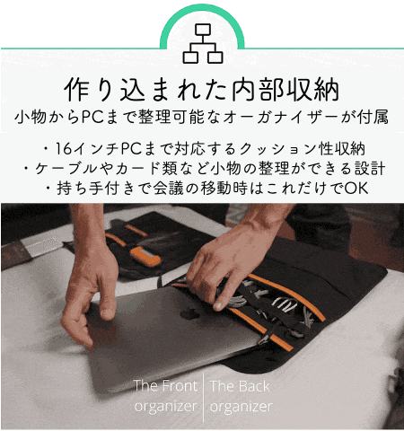 PCやノートの収納に適しており、会議室への移動や、カフェでのちょっとした作業はこれ一つで十分です!
