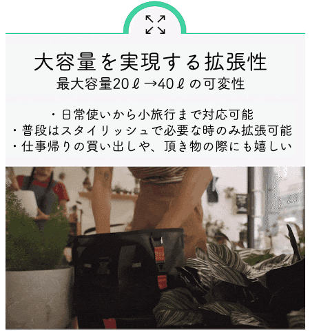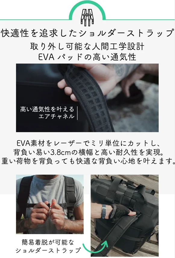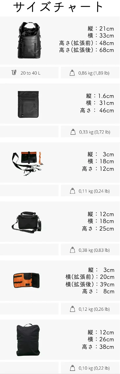 防水で変幻自在。豊富なオプションを組み合わせることで、あらゆるシーンに適応するバッグが誕生いたしました!