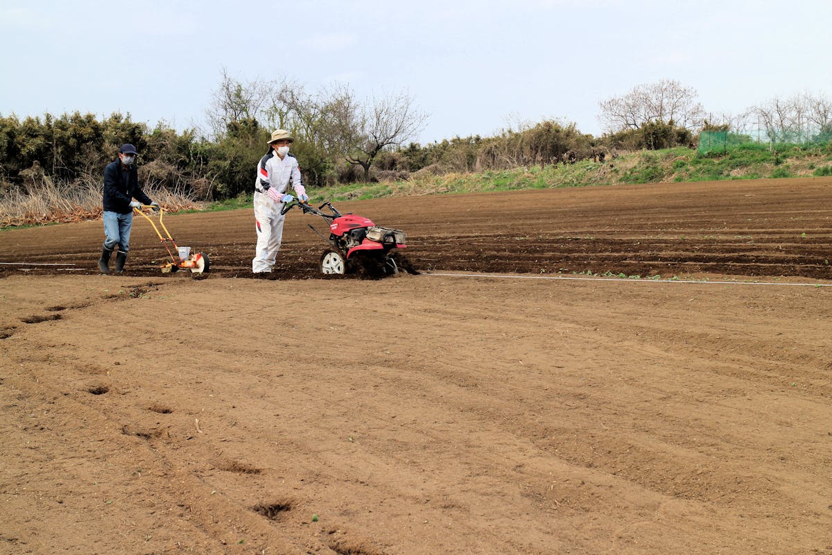 元肥散布後の整地作業