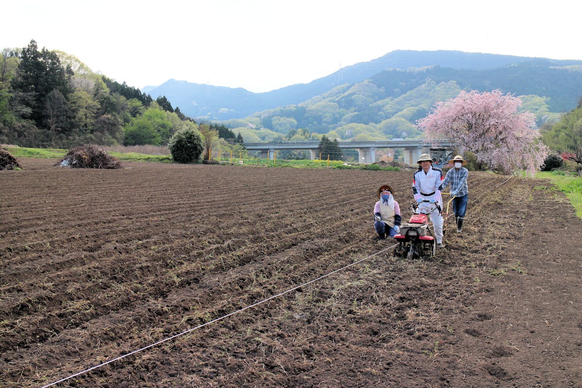 3月中旬:ニゲラ栽培に用いる畑の整備(元肥の散布、トラクターや管理機による耕運・整地)
