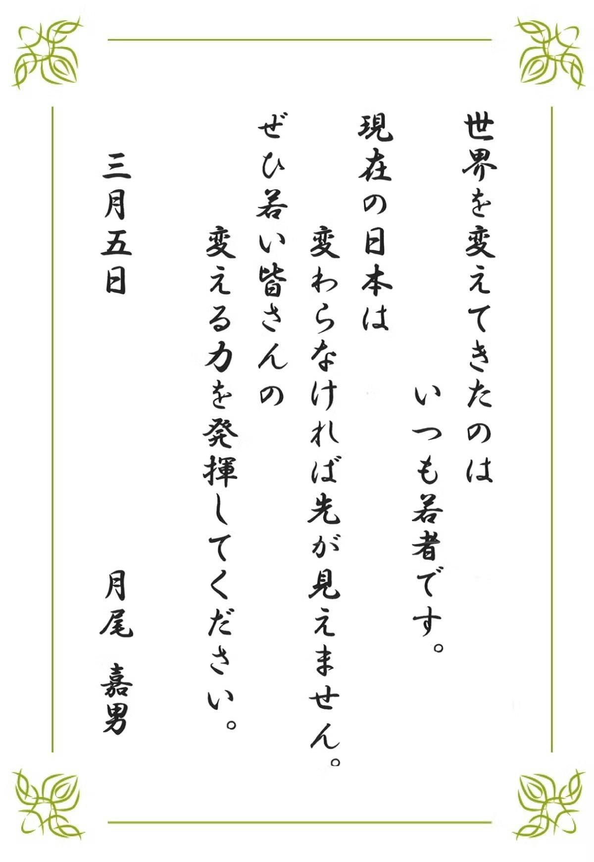 我々教え子が塾長の想いを受け継ぎ、訪れる人を元気にする活気あふれるセラピータウンをつくり、この第二の故郷でもある自然豊かな北海道に恩返しをしたいと思います。