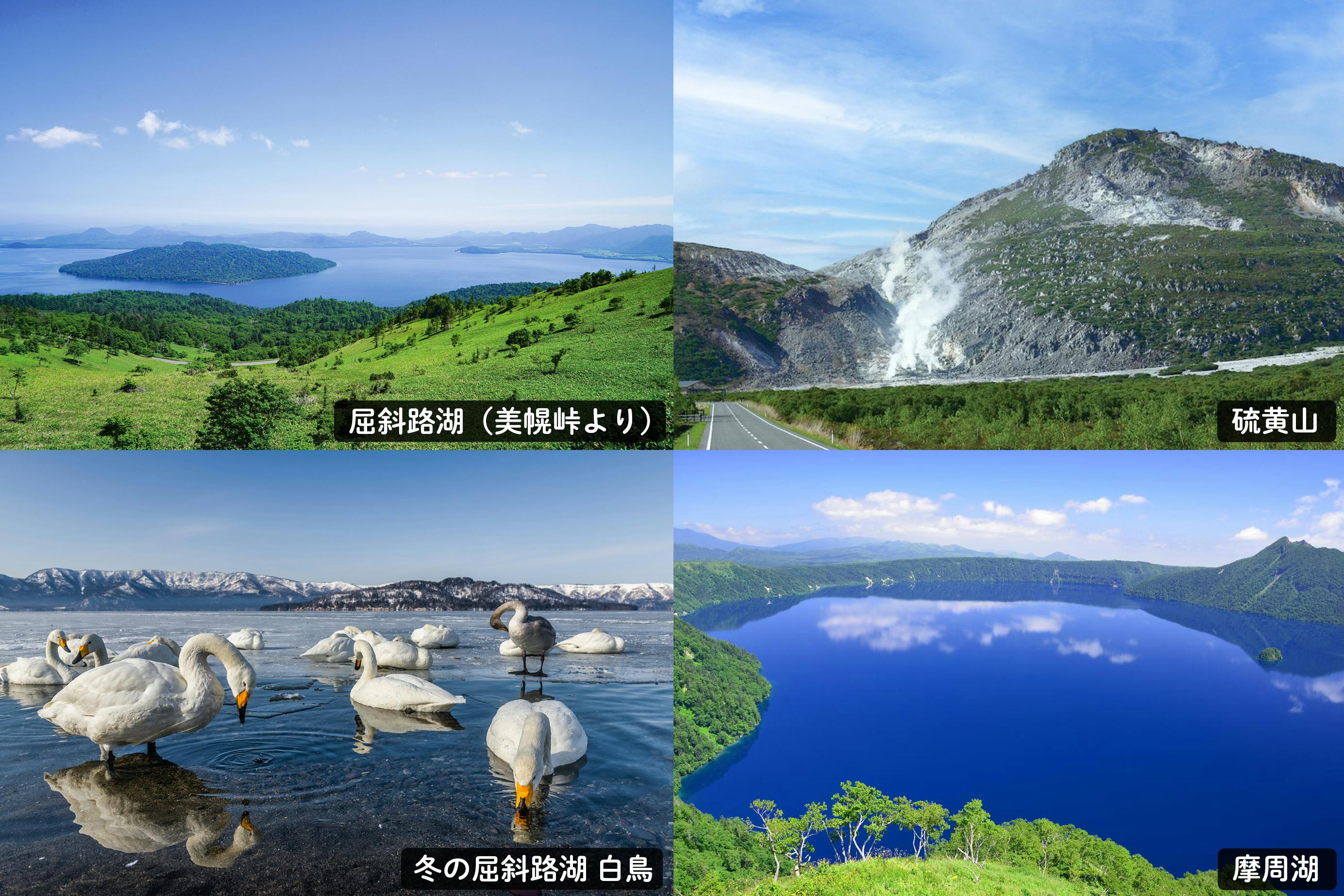 世界有数の透明度を誇る「摩周湖」や日本最大のカルデラ湖の「屈斜路湖」をはじめ、日本でも有数の泉質の「川湯温泉」や今も噴煙を巻き上げる「硫黄山」など、とても豊かな自然に囲まれています。