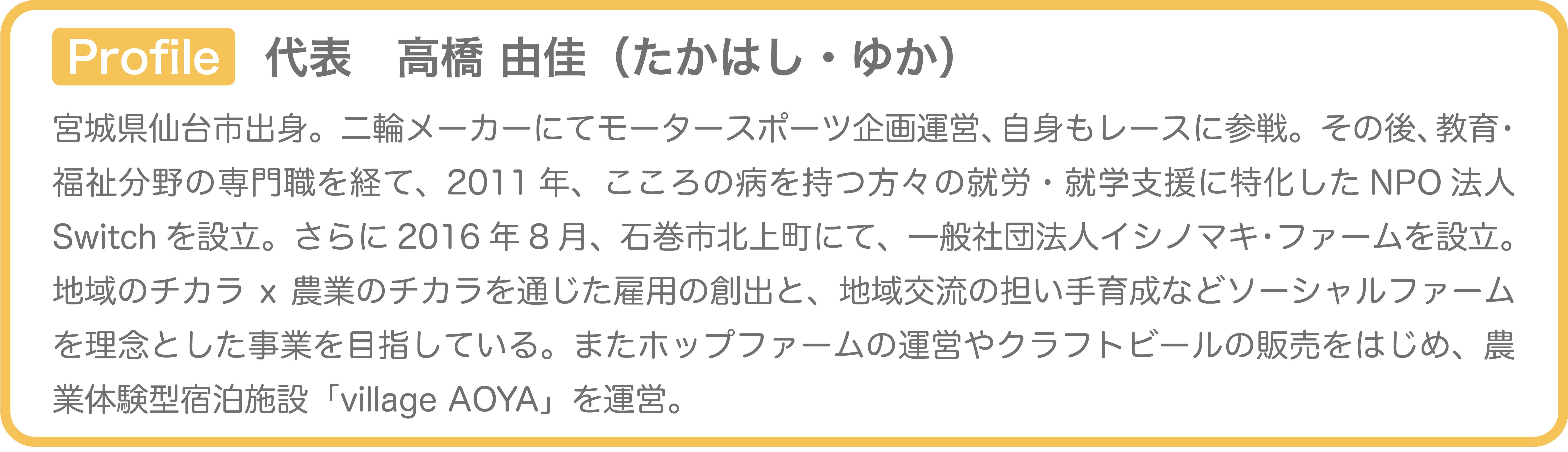 皆さん、こんにちは。一般社団法人イシノマキ・ファームの代表理事、高橋由佳です。