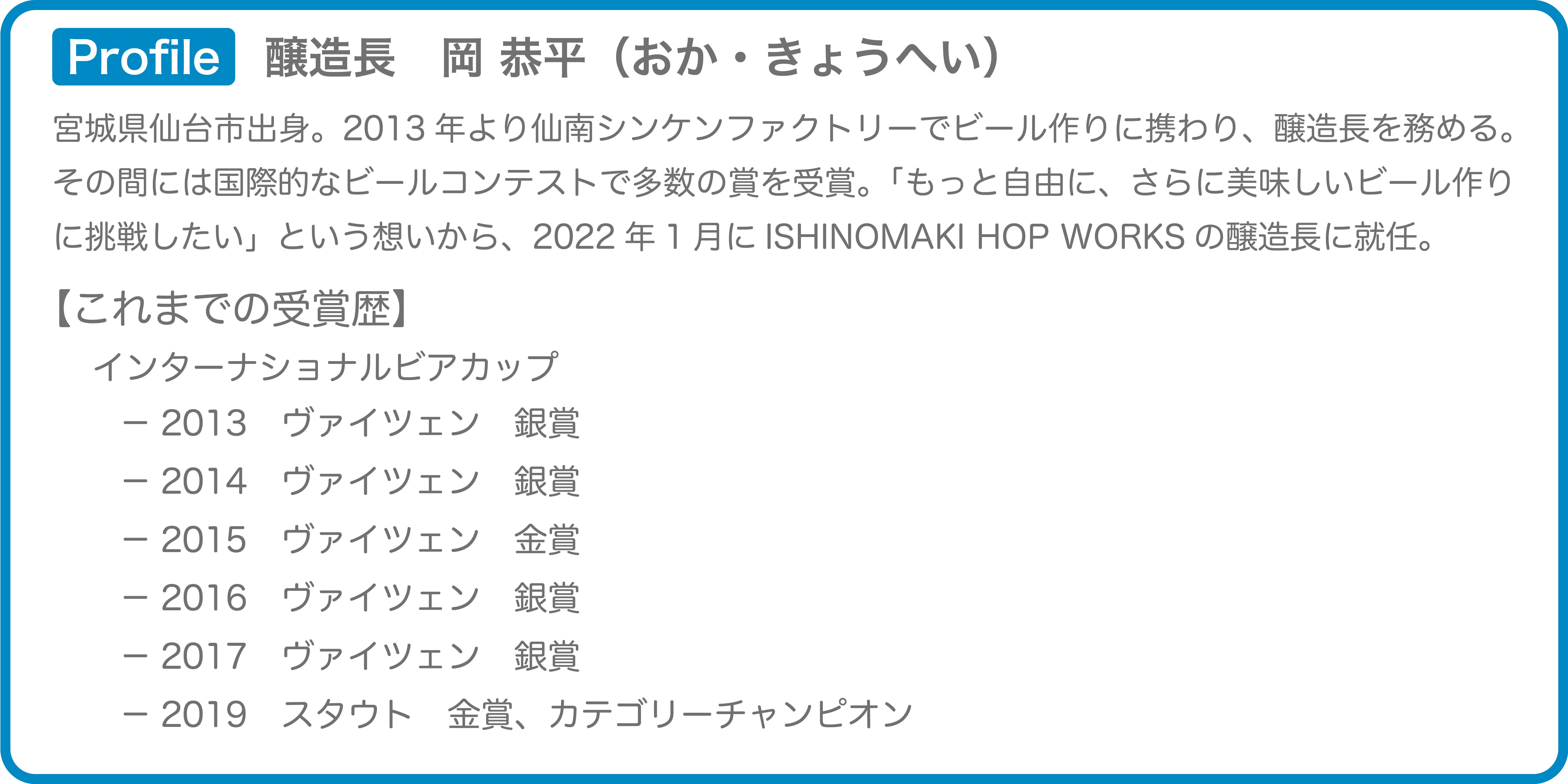 皆さん、こんにちは。「ISHINOMAKI HOP WORKS」醸造長の岡恭平です。