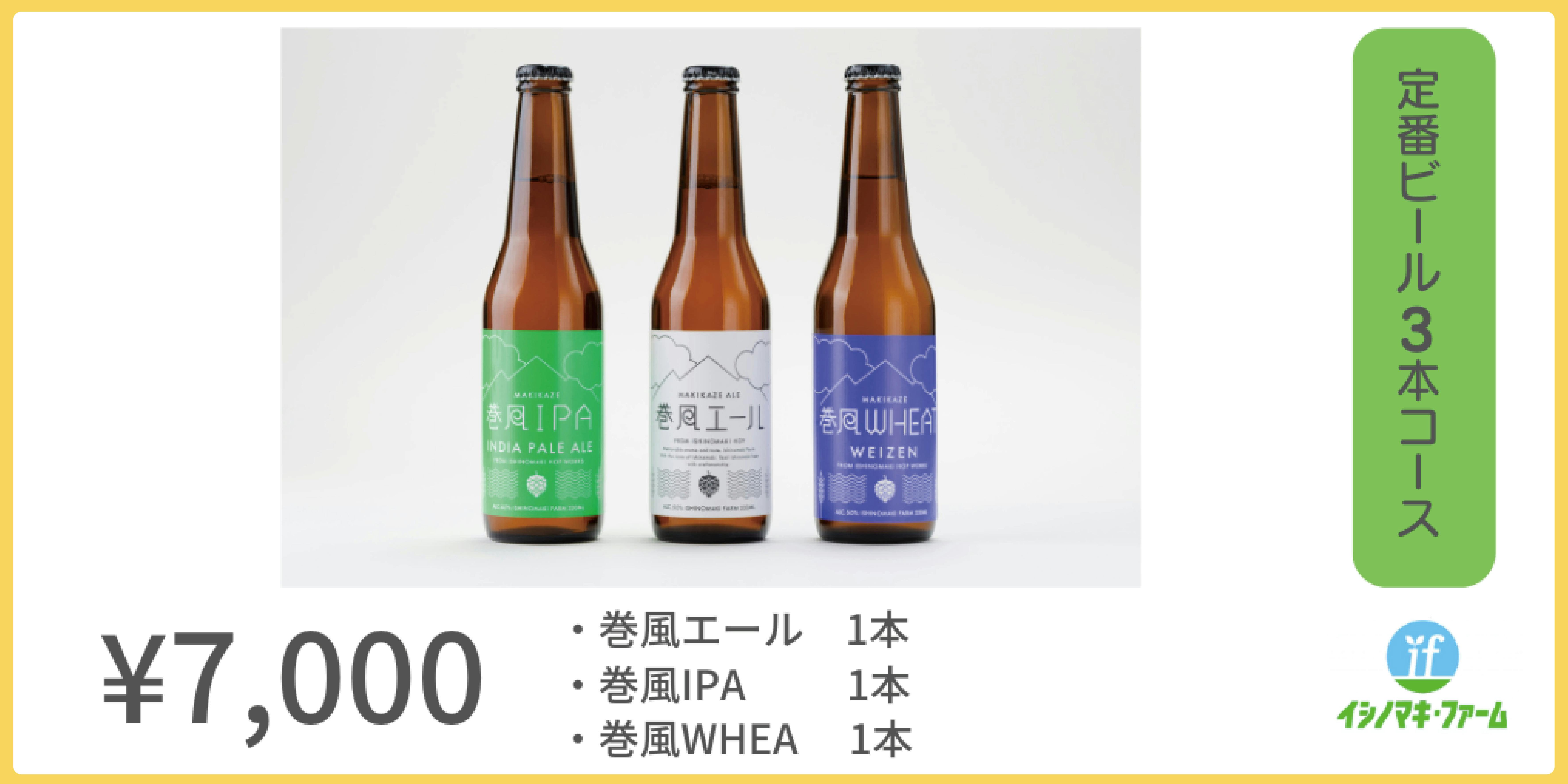 イシノマキホップワークスの定番ラインナップ巻風シリーズ(巻風エール、巻風IPA、巻風WHEATを各1本)を3本、ご自宅へお届けします。*20歳未満の者による飲酒は法令で禁止されています。20歳未満の方はこのリターンを選択できません。