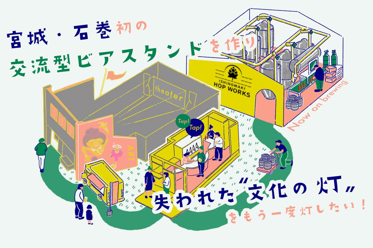 ですが、まだまだ道半ば。美味しいビールを提供することに加えて、ビールをきっかけに新しい可能性を生み出せるような場を提供するために、交流型ビアスタンドの整備にチャレンジします。そして、石巻の「文化通り」に新しい文化の灯をもたらしていきます。