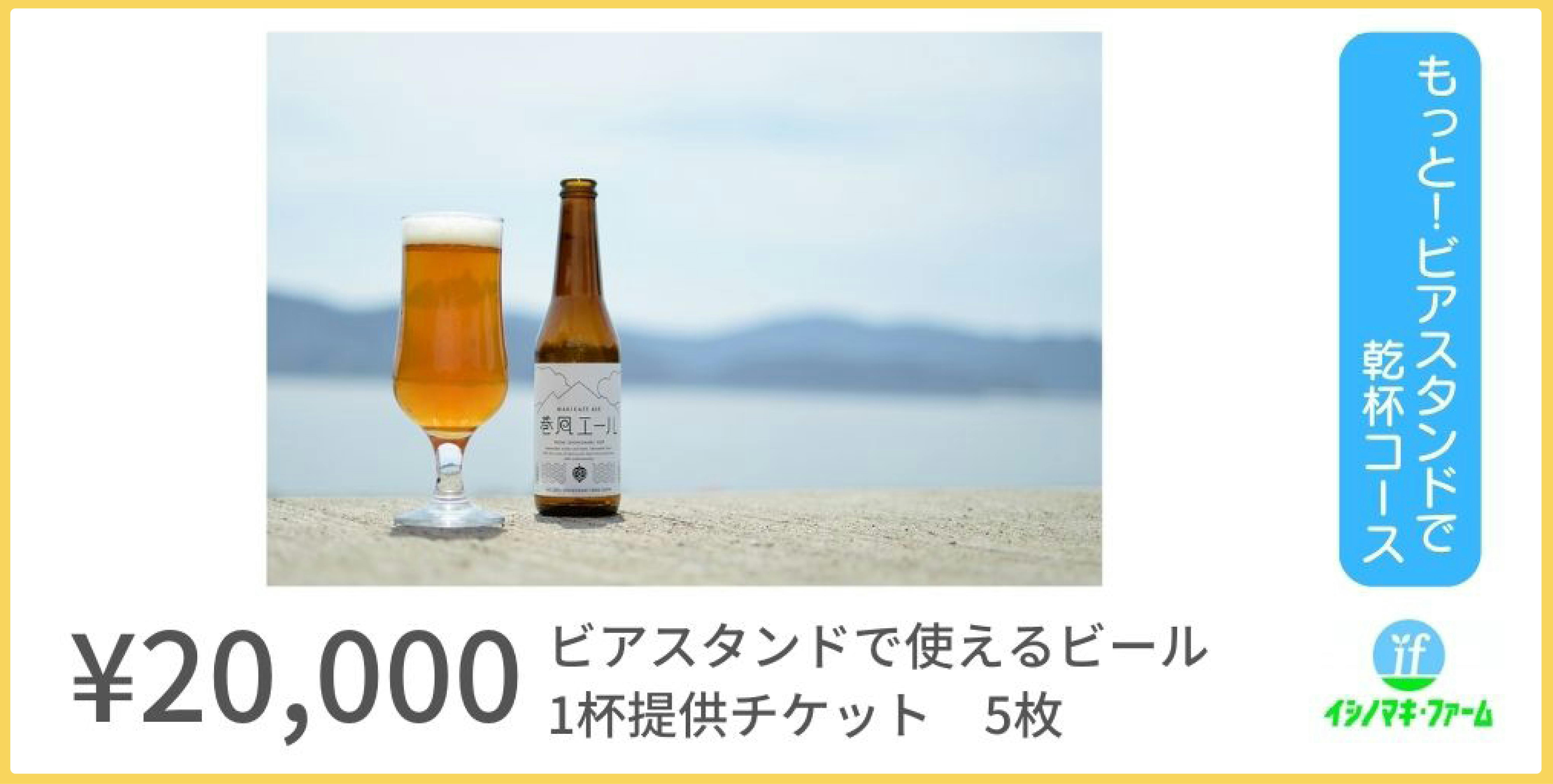 NEWオープンのビアスタンドで乾杯しましょう! ビアスタンドで使えるビール提供チケット5枚(1回ご来店につき、2枚までご使用いただけます) チケット有効期限:2023年10月1日〜2024年9月30日まで(金土日のみ適用) *20歳未満の者による飲酒は法令で禁止されています。20歳未満の方はこのリターンを選択できません。