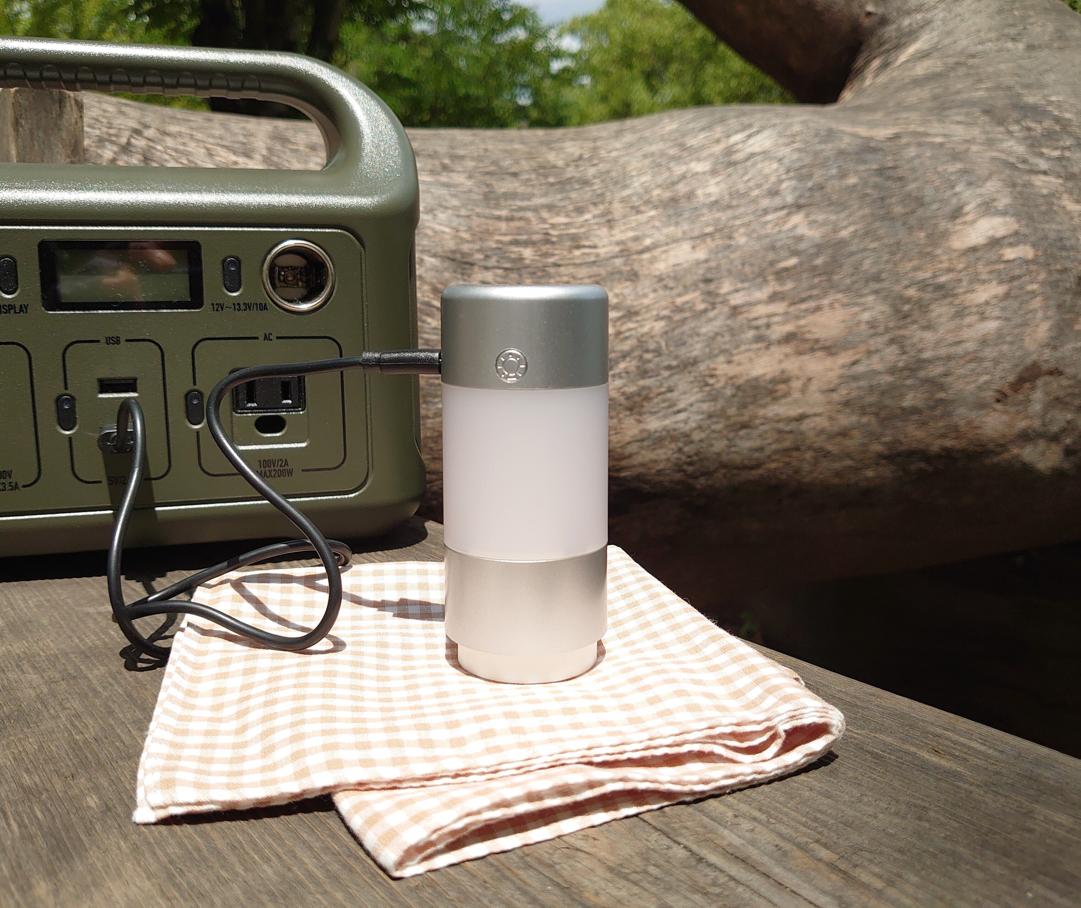 夕暮れ時のキャンプでも手元が明るく使いやすい、日が暮れたら枕元灯や誘導灯にも使える優れものです。