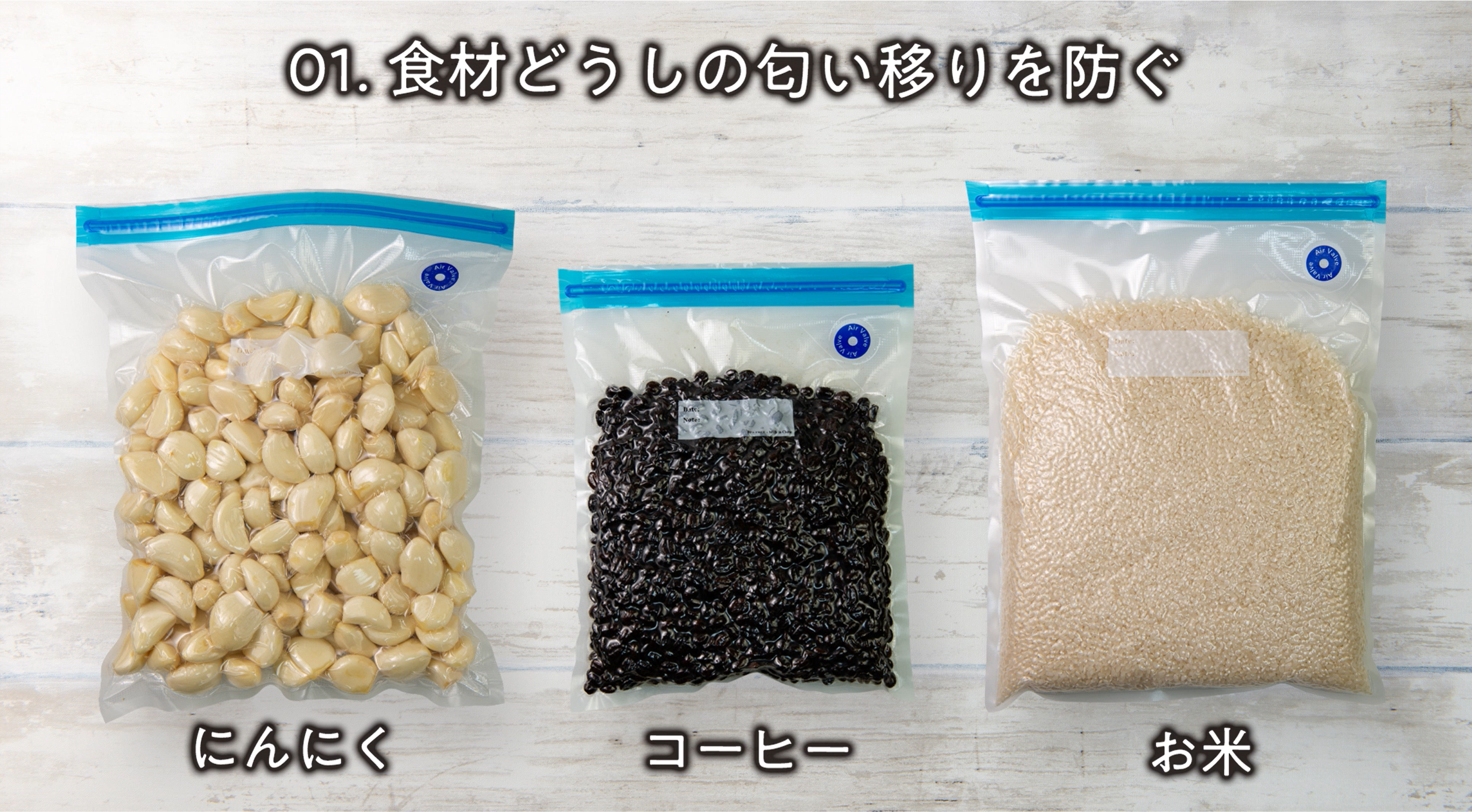 1. 他の食材からの匂い移り(または、他の食材への匂い移り)を防ぐことができる