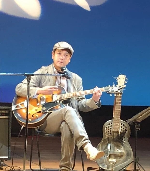 数年前、私は持病の心臓発作が原因で、不慮の事故により、ギター演奏の要の3本のうち、2本の指先を失ってしまいましたが、その後も諦めずに活動を続けています。現在は補助具を使いライブ活動を行えるまでになりました。