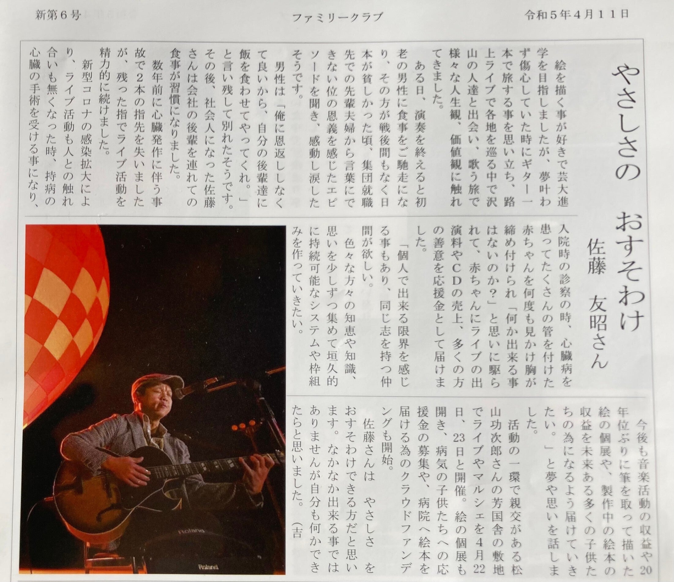 ・ライブ出演料、CDの売上は、心臓病の赤ちゃんへ支援金を送り続けています。