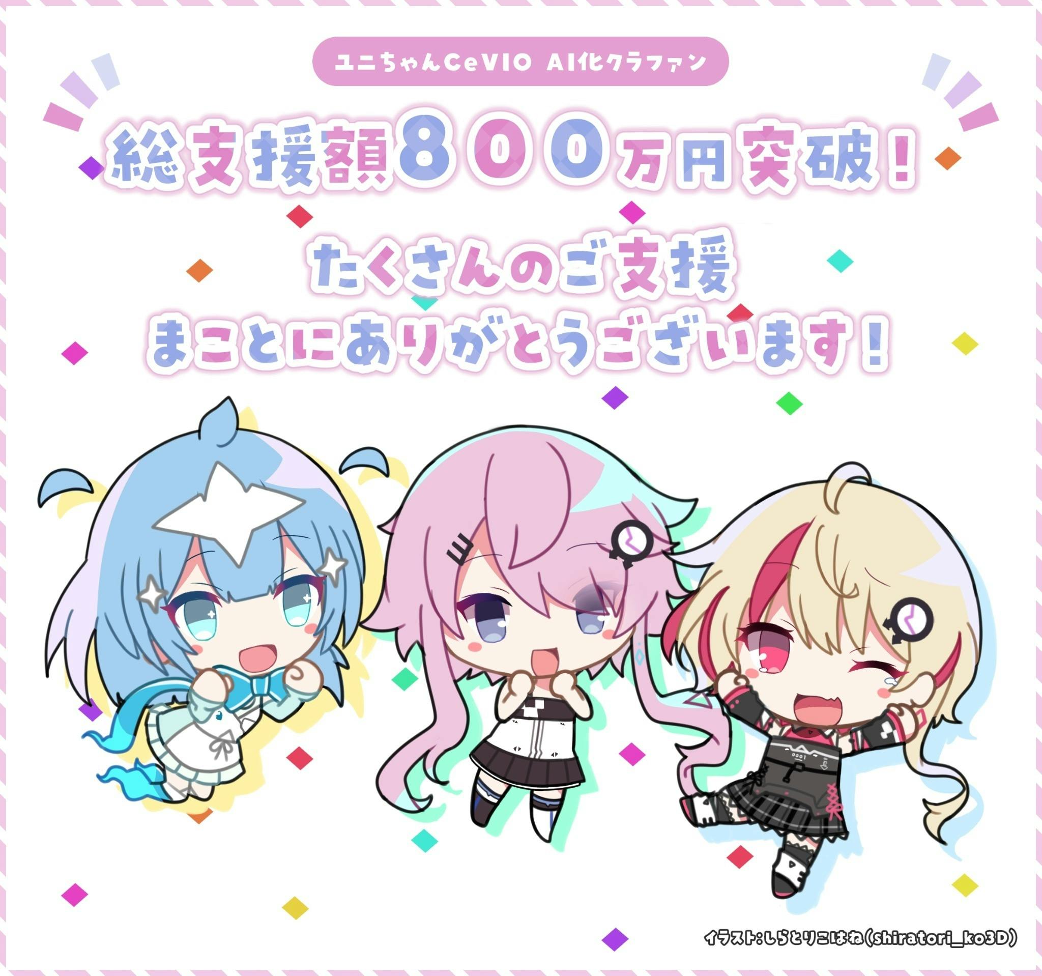 みなさまがフィーちゃんを愛してくれてたくさん使ってくれて、ツイッターにも多くのファンアートや動画を公開いただいたことで、今回のCeVIO AIユニちゃんクラウドファンディングの企画は実行できました。