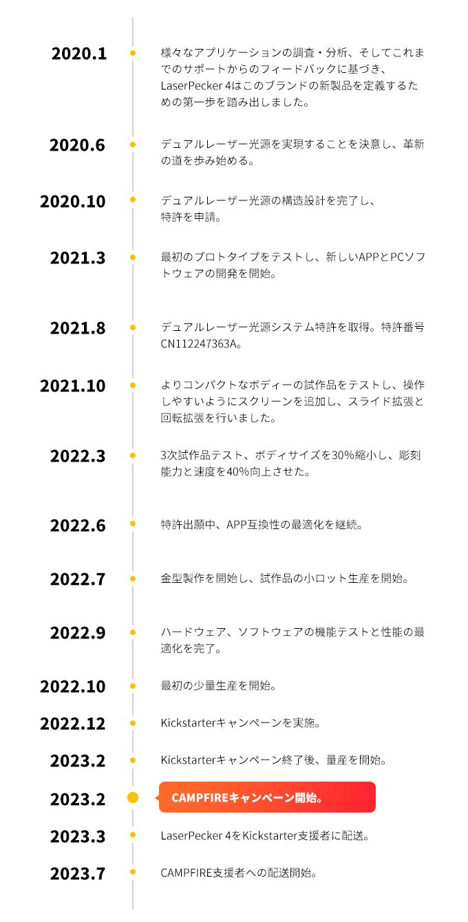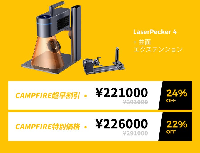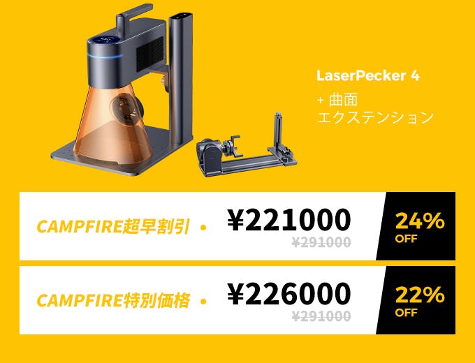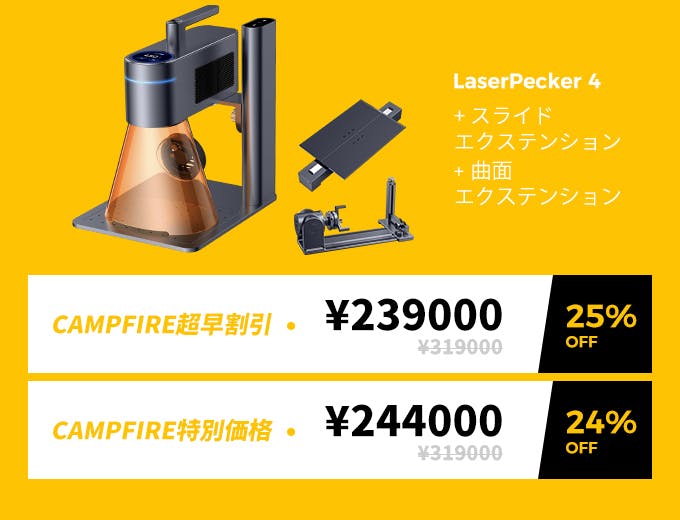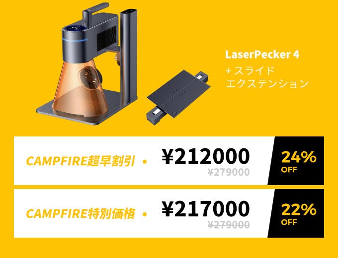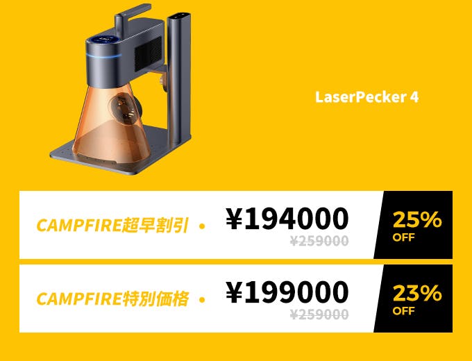 2023/12/12 11:00支援者の皆様へCAMPFIREでのご支援、いつも心から感謝しています!本日より、CAMPFIREにてLX1 & LX1 Maxの先行予約を受付開始しました:世界最高の折りたたみマルチファンクショナルレーザーです。折りたたみデザインで持ち運びが簡単3つのレーザータイプ搭載であらゆる創造性に対応200mm/秒の超高速彫刻スピード 0.001インチの高精度4K写真クオリティの彫刻 ペイントブラシモード 回転式彫刻に対応皆様の継続的なご支援は私たちにとって非常に重要です。LX1 & LX1 Maxを最初に体験するため、本日より2日間30%OFFの特別な割引を行うキャンペーンを行いますこれは私たちにとって、新たなスタートです。LaserPeckerの魔法を再発見する旅にご参加ください!今すぐぜひ、応援をお願いいたします!https://camp-fire.jp/projects/view/719278心から感謝を込めて、LaserPeckerチーム もっと見るLaserPecker4について発送