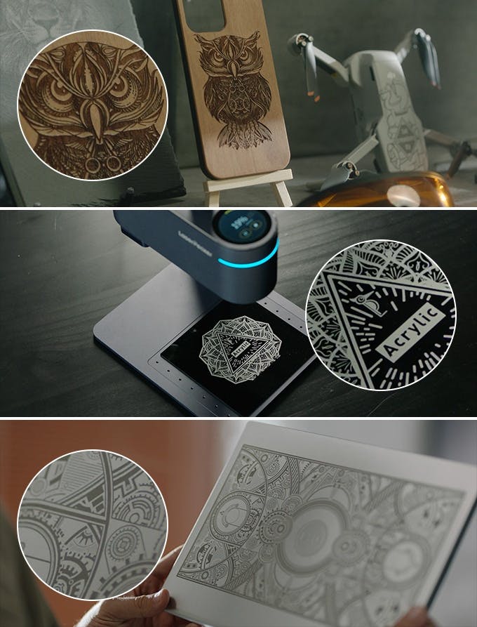 LaserPecker4 と共にモバイルおよび PC アプリのアップグレード版がリリースされ、より柔軟でクリエイティブな体験が可能になります。新しいアプリには、マルチレイヤー編集、可変彫刻設定、マルチフォーマット画像インポート、その他多くの画像編集機能をサポートする、全く新しい強力なクリエイティブモジュールが搭載されています。また、新しいコミュニティ機能が搭載され、ユーザーはクリエイティブな彫刻や好みの設定をシェアすることができます。これは、プロの設定を簡単に初心者が真似できるということを意味し、コミュニティメンバー全員で可能性の限界にチャレンジができます。