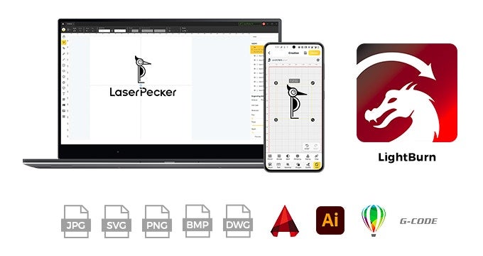 LaserPecker アプリは、選択された材料に基づいて最適なレーザー光源とパラメータを設定することができるので、ほぼ全ての素材に最適なソリューションを提供します。