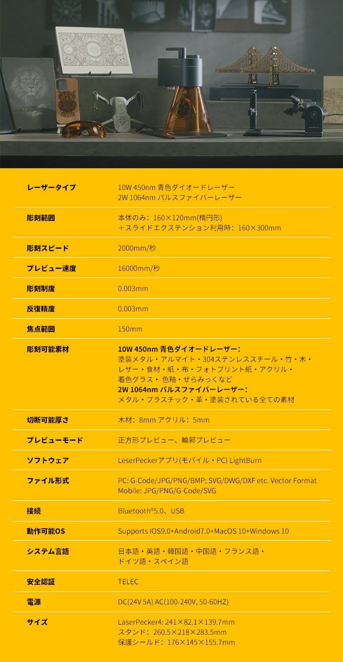 LaserPecker4の作業領域は160×300mmに拡大され、意欲的なアイデアに対応できる大きさです。