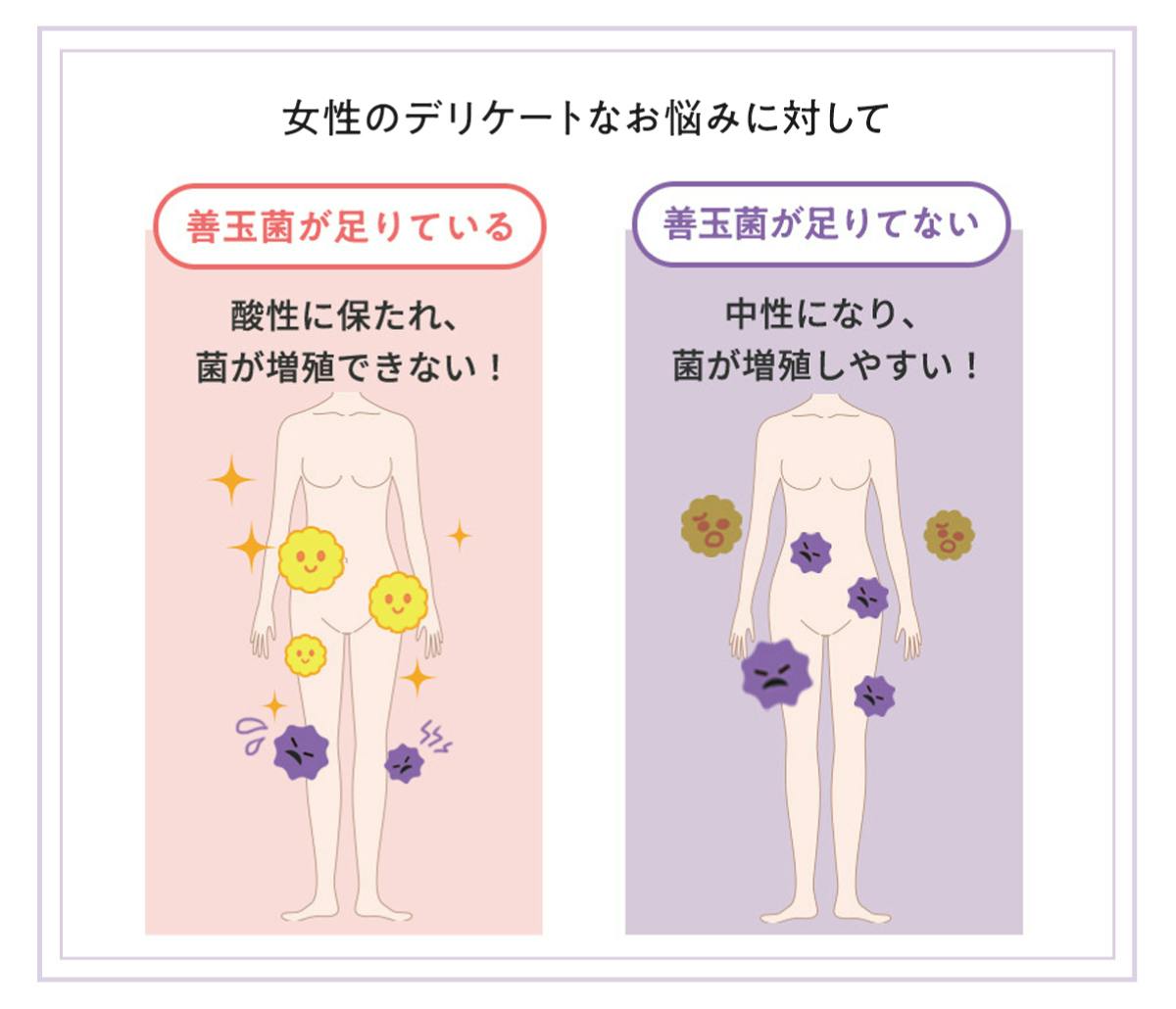 このバランスをしっかりと整えるためにも、デリケートな女性のことを考えた善玉菌を補うことがとても大事なんです。