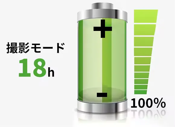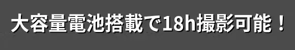 長時間の撮影を楽しんでいただけるように「Q3」は1800mAhの超大容量バッテリーを搭載しており、3時間フル充電すれば、なんと最大18時間連続撮影できます!さらに、充電しながら使用可能なので、モバイルバッテリーに接続しながら使用すれば記録中の電源切れの心配はありません。