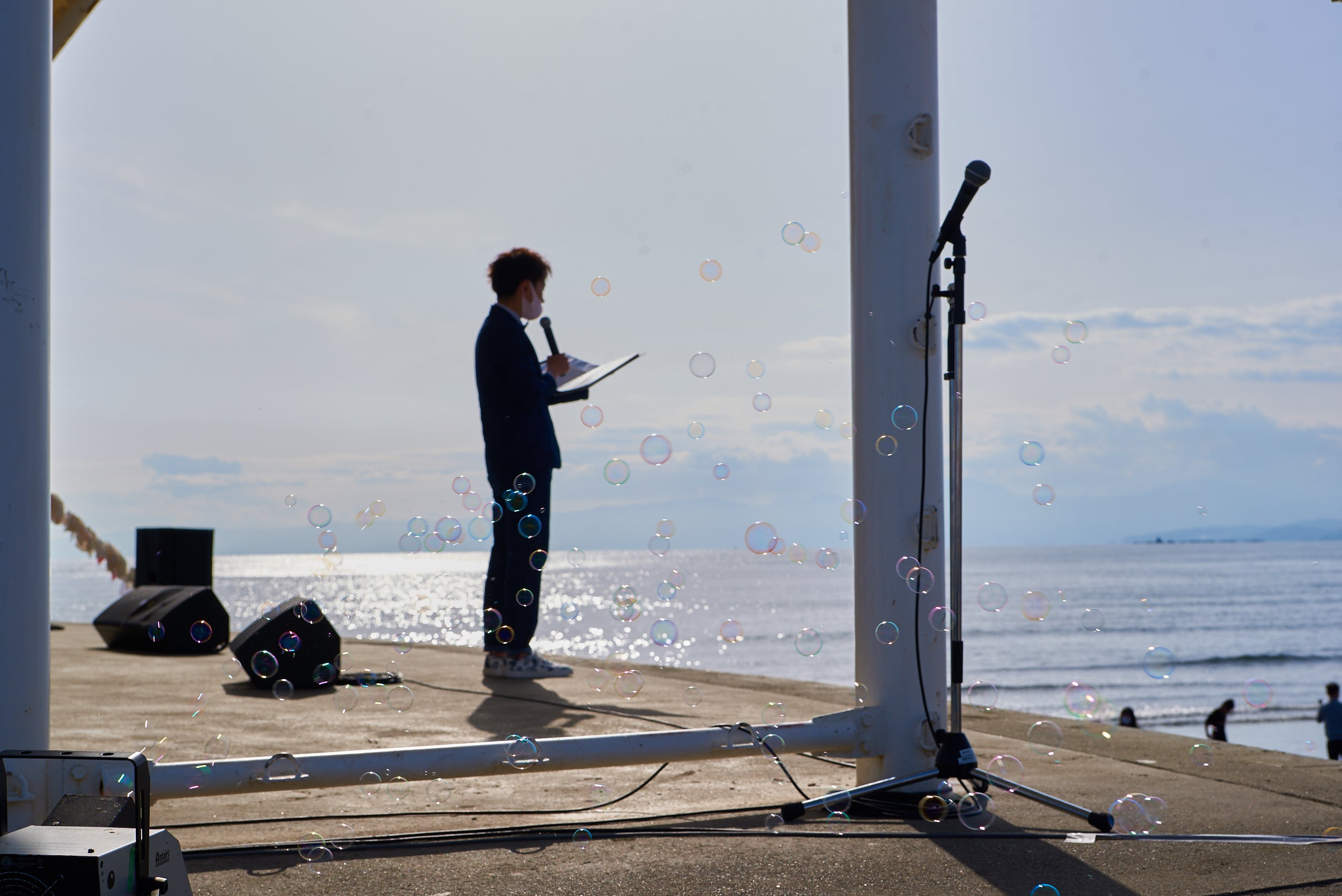 出演する高校生に向けたあなたの応援メッセージをステージMCの大矢剛康さんが読み上げます!藤沢市を愛するユーモアと情熱溢れる声量で、心を込めて出演者に届けます!大規模会場で使用される自慢のスピーカーで、海一帯に響きます!