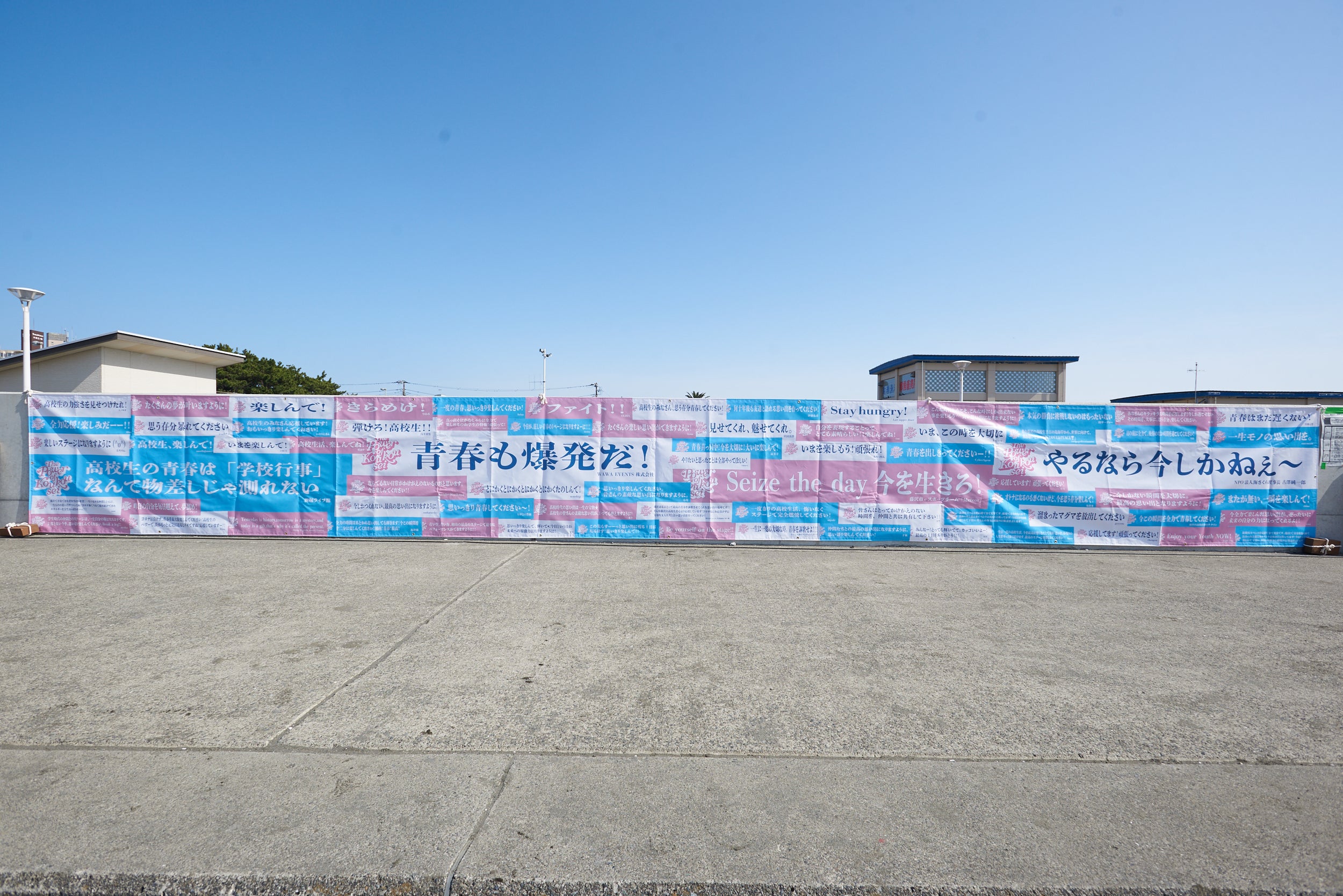出演する高校生に応援メッセージを届けられます!イベント当日「会場に設置予定の応援スポット」に、「お好きなメッセージ」と「お名前 or ニックネーム」を「小/中/大サイズ」で掲出します!応援ボードは出演する高校生の記念撮影スポットに!今年度は昨年度の横断幕とは一味違うデザインで掲出する予定!来場される方はぜひ直接ご覧ください!来られない方に向けて後日掲出の様子を共有いたします!