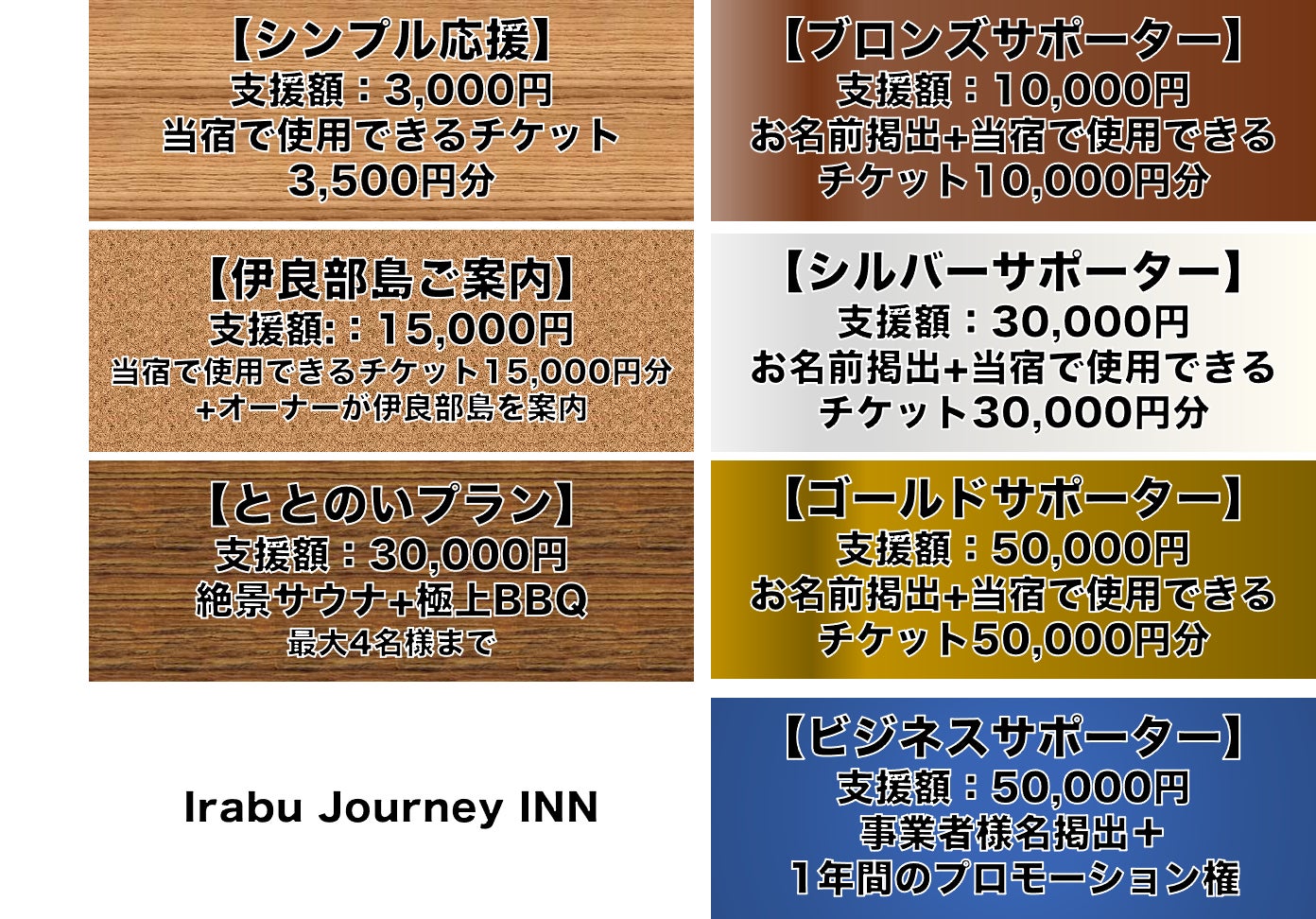 2024/04/21 10:33ご支援者の皆様ご無沙汰しております!皆様の多大なるご支援により、交流型ゲストハウス伊良部ジャーニーインは開業10ヶ月目を迎え、日々素敵なゲストさんに囲まれて楽しく元気に営業しております。本当にありがとうございます!その様子は随時公式インスタグラムでお伝えしておりますのでぜひご覧ください。【リターンのクーポンについて】事前にお伝えさせて頂きました通り、クーポンの使用期限が【2024年6月30日】までとなっておりますので、まだご使用になっていない方はお早めにご予約をお願い致します。【初期スタッフのチャーリーがマリンショップ開業準備中!】初期スタッフと間借りのカフェ営業をしてくれていたチャーリーが、伊良部島や宮古島の海にハマりマリンショップを開業することになりました。当宿のスタッフ業務をきっかけに宮古島や伊良部島に根付く人が出てきてくれて大変嬉しく思います。クラウドファンディングも実施しておりますので良かったら見てください!https://camp-fire.jp/projects/746572/activities/568276 もっと見る