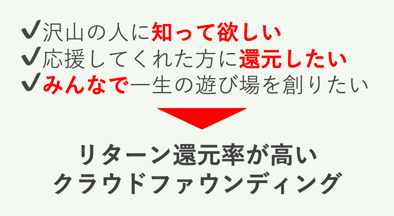 そんな中で単純に比較サイトに載せて告知することも考えたのですが、私達の想いに共感してくれた人に来て欲しいという気持ちがあり、告知の手段としてクラウンドファウンディングを実施することにしました。