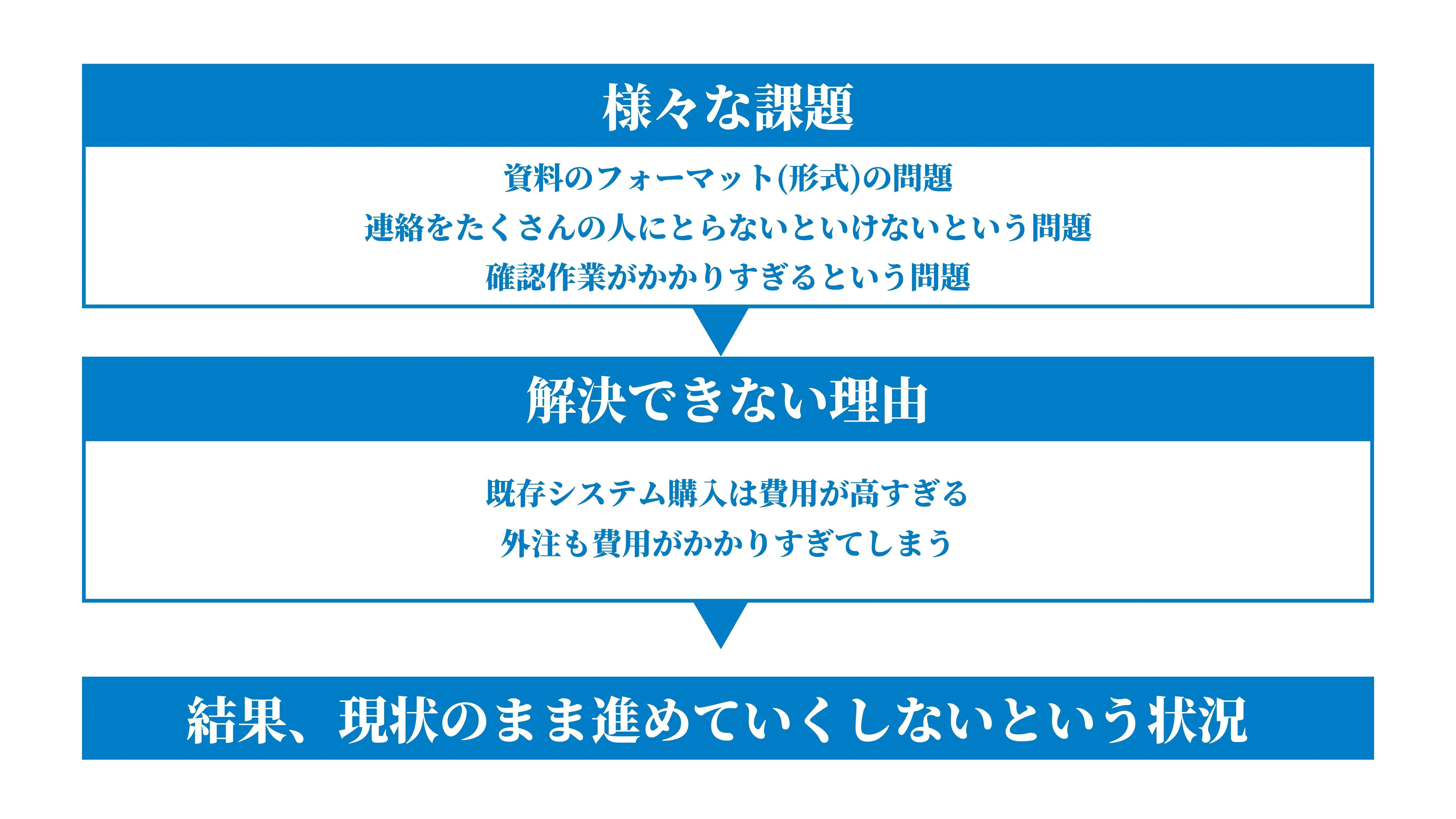 担当者が時間をかけて作業をしており、正直、現場では悲鳴が上がるような状況です。