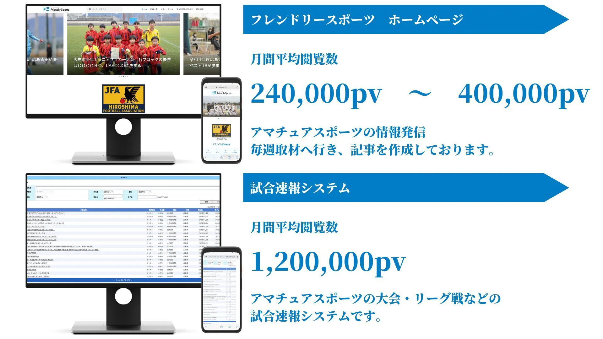 ありがたいことに最近では『アマチュアスポーツ = フレスポ』というイメージを持ってくださる方も増え、ホームページのアクセス数は月平均240,000pv~400,000pv *2