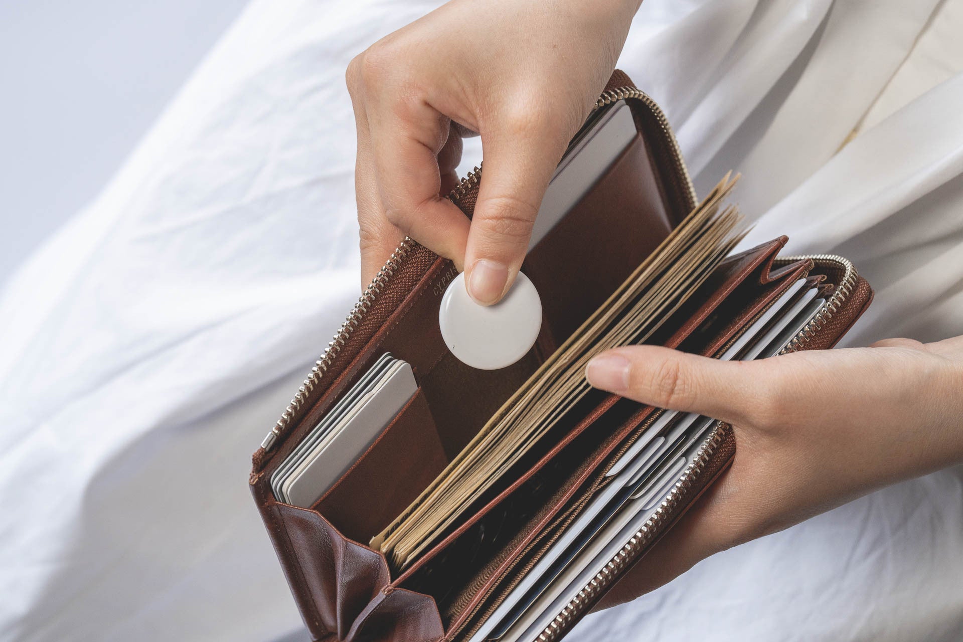 また、アイランドポケット間のスペースには、AirTagなどの追跡防止タグや鍵など、小物を入れておくこともできます。
