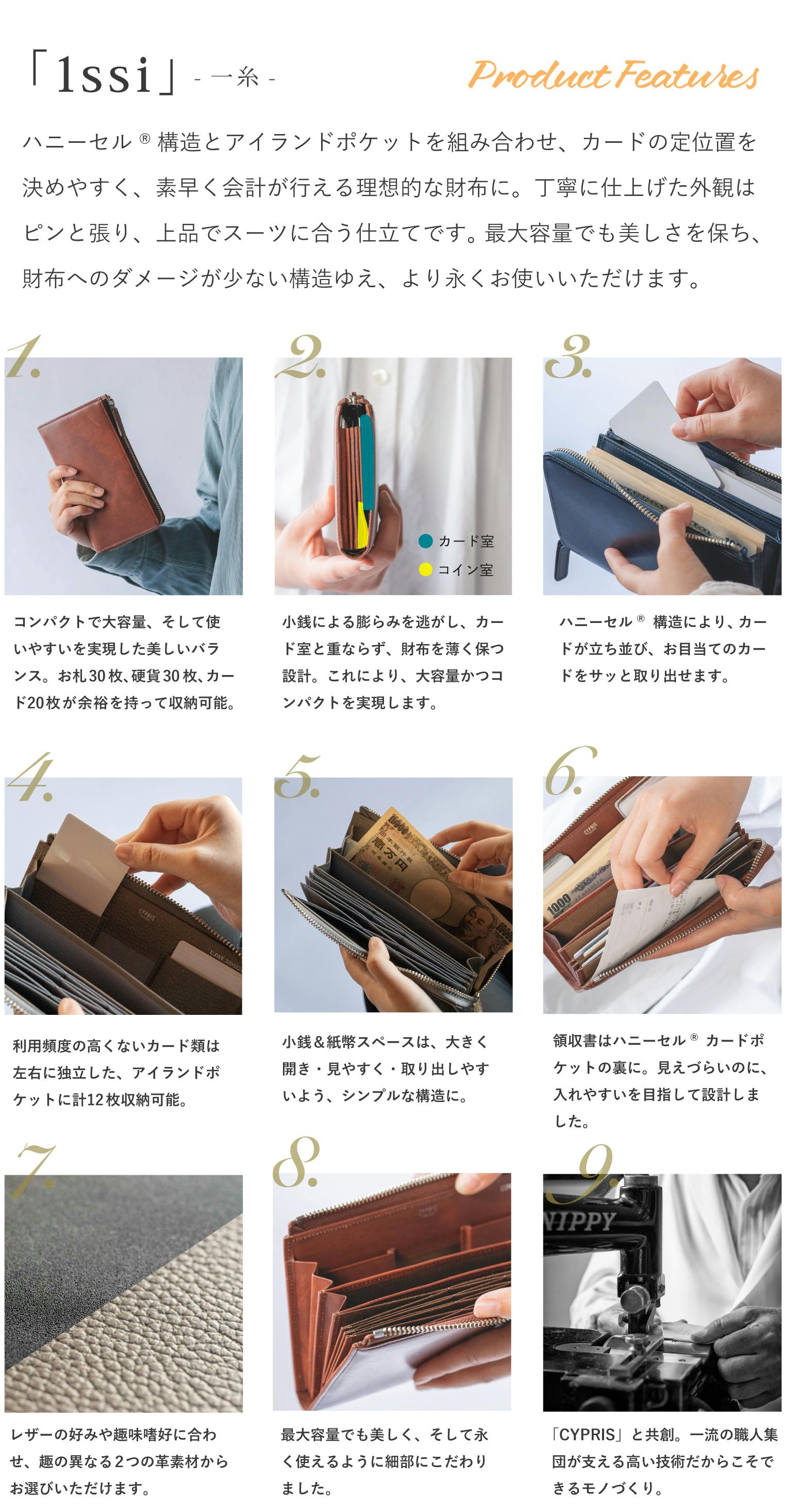 カードの定位置が決めやすく、素早く取り出せる。画期的な構造を搭載した、理想的な長財布「LFコンパクトハニーセル®長財布|1ssi(いっし)」の登場です。