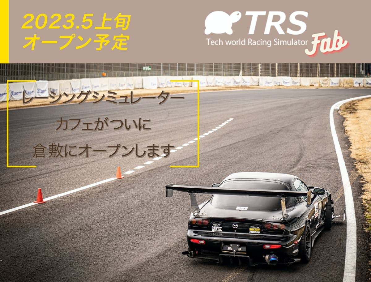 TRS Fabとは、岡山県倉敷市で2023年5月オープン予定のレーシングシミュレーターカフェでございます。